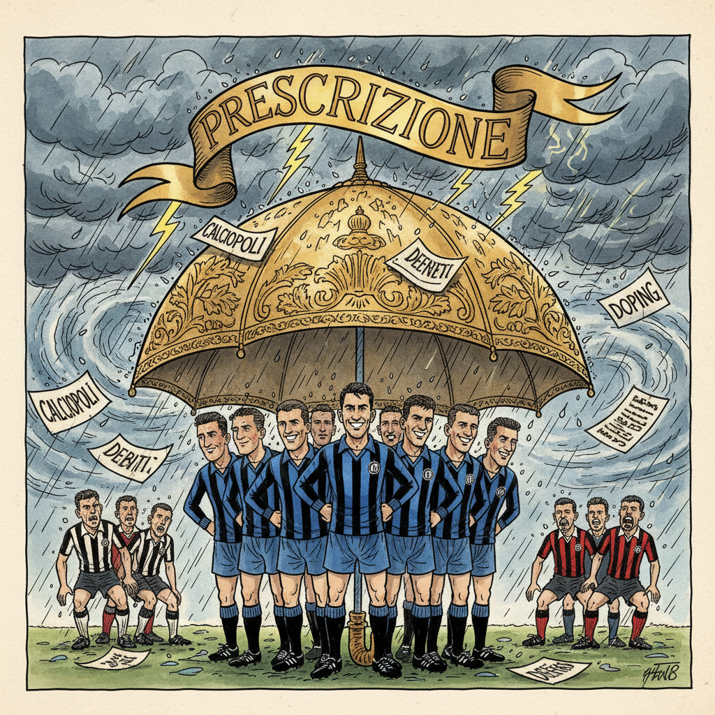 Ammirazione per un club che dal Lodo Colombo del 1922 al fondo Oaktree del 2024 ha attraversato un secolo di tempeste uscendone sempre, miracolosamente, con le scarpe asciutte. Per come la prescrizione arriva sempre puntuale. Per come i regolamenti si applicano sempre agli altri. Per come i vostri avvocati meriterebbero una statua fuori da San Siro – l’altra metà, quella vostra.
